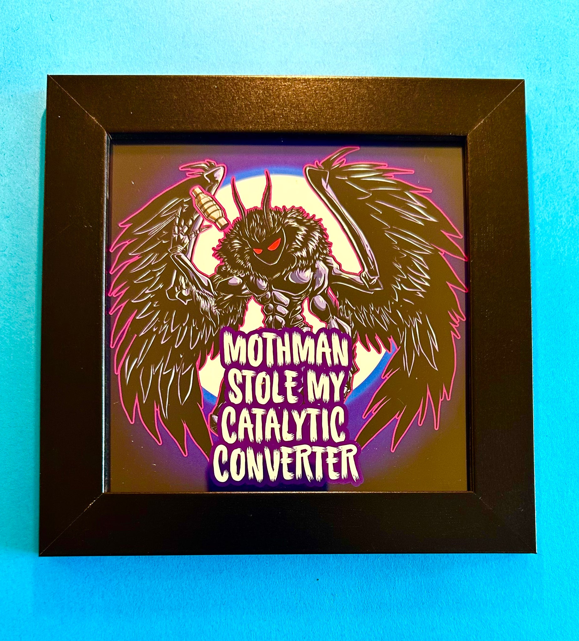Mothman stole my catalytic converter! Funny cryptid meme - 5x5 inches Framed Album Cover Styled Art print!