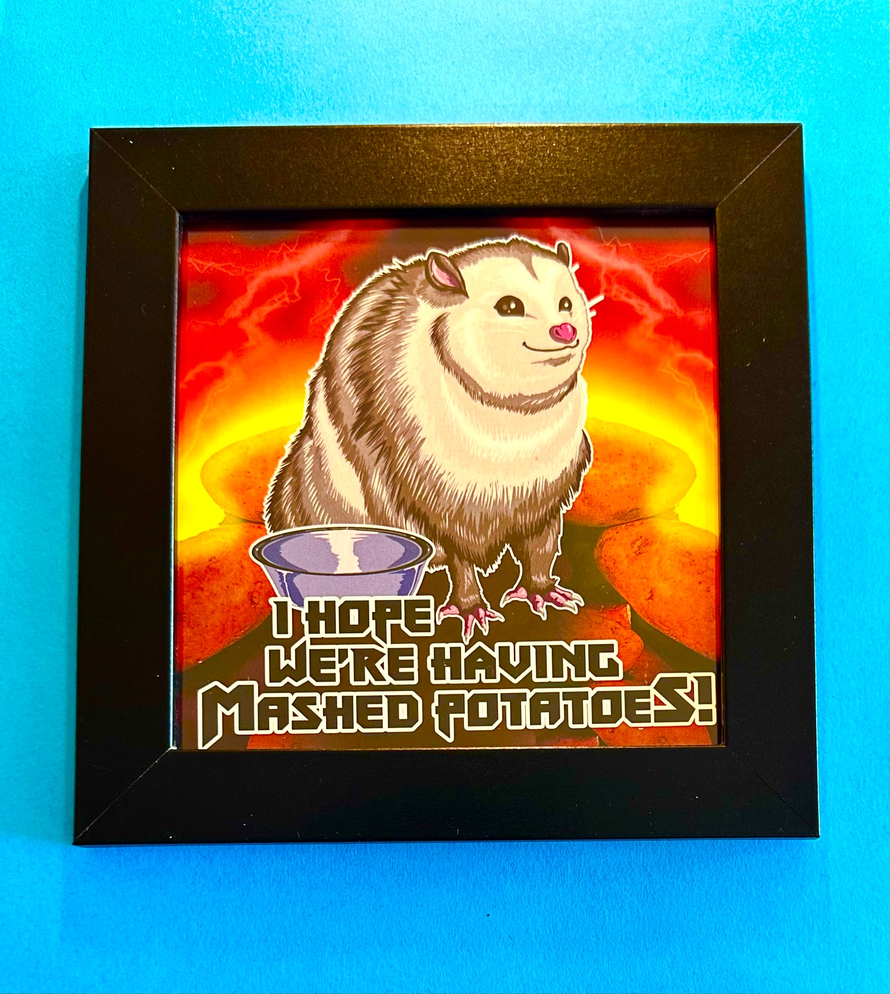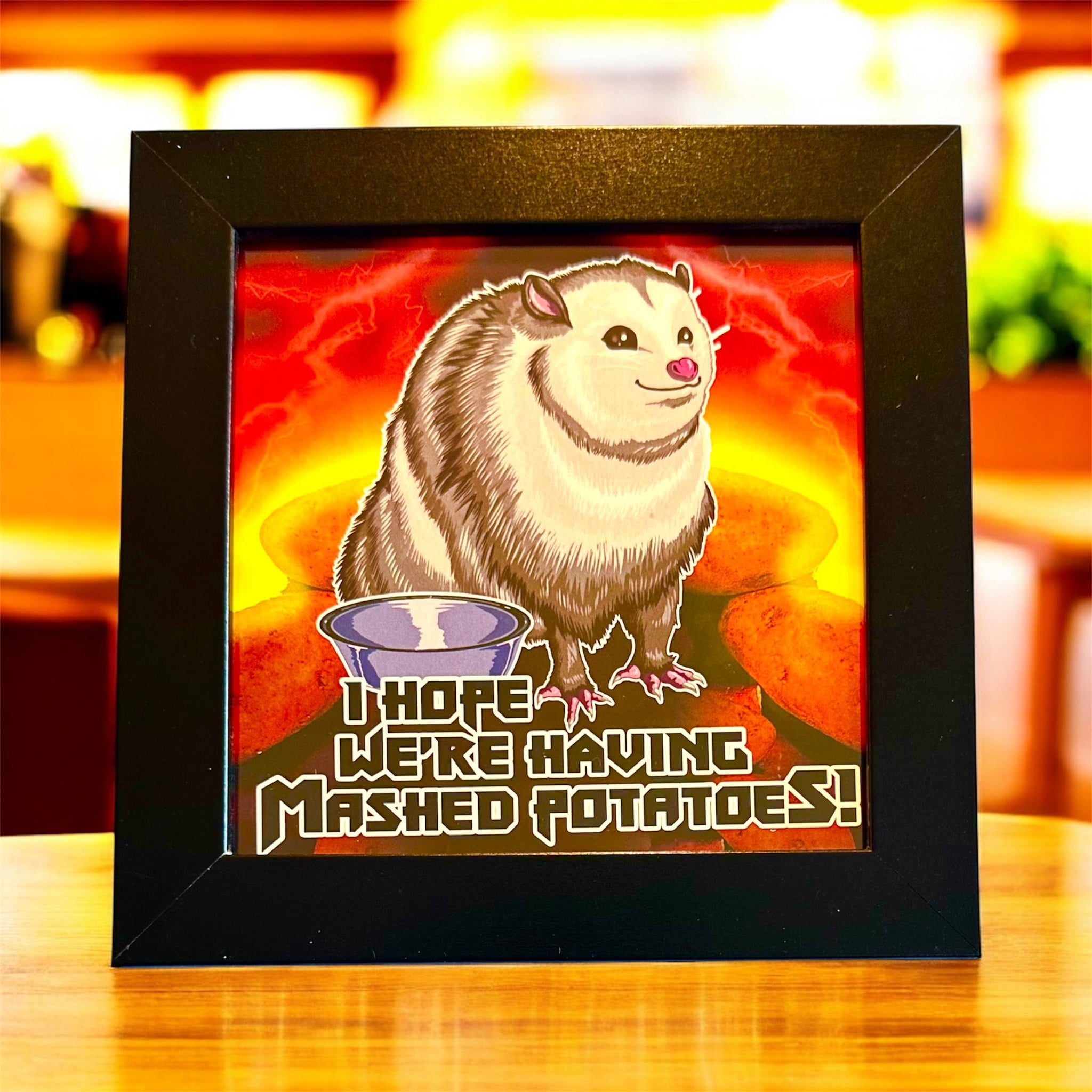I hope we’re having mashed potatoes! Possum chubby cute Funny meme - 5x5 inches Framed Album Cover Styled Art print!