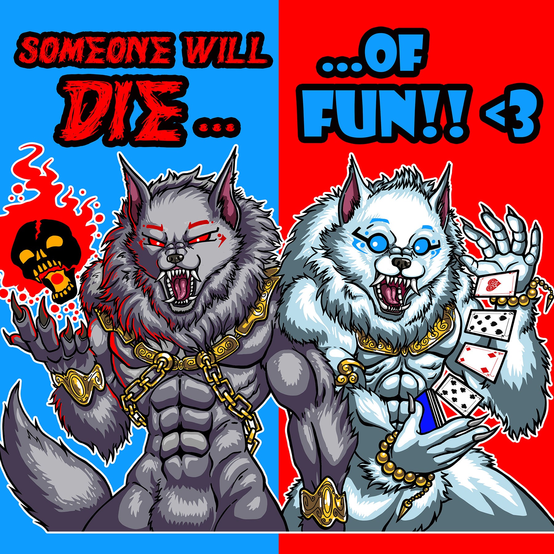 Hellhounds Werewolves ‘Someone Will Die….Of Fun!’ Creepmas white elephant gift monster lover Cryptid Funny meme - 5x5 inches Framed Album Cover Styled Art print!