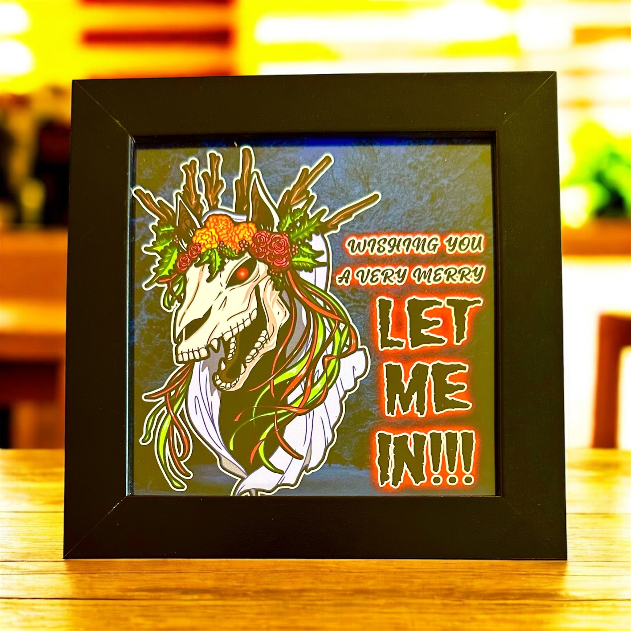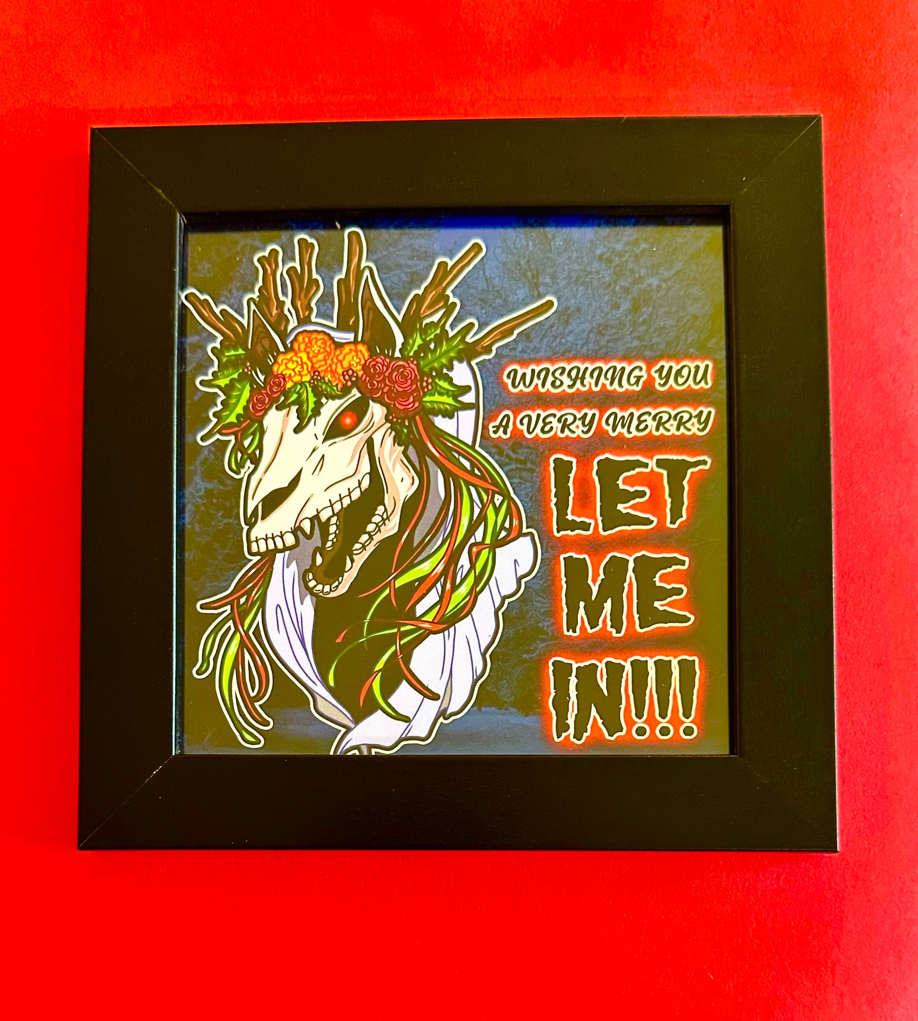 Wishing you a very merry LET ME IN!! Mari Lwyd Christmas Horse Creepmas Funny meme - 5x5 inches Framed Album Cover Styled Art print!